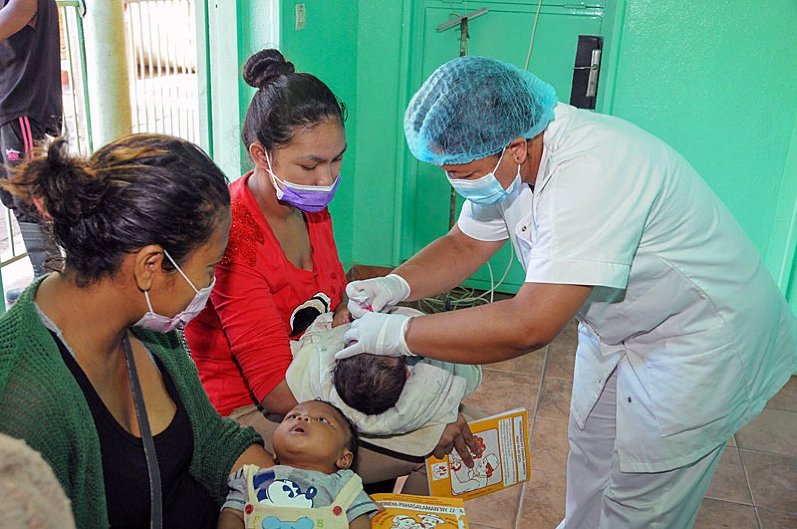 Le dispensaire s’inscrit dans un projet global du gouvernement malgache visant à lutter contre la malnutrition. Ainsi 80 bébés du quartier sont encadrés par un programme alimentaire dès l’âge de 6 mois jusqu’à 5 ans. Ils sont allaités à la naissance par leur mère, si ce n’est pas possible le lait maternel est remplacé par du lait concentré car le lait maternisé est inabordable et difficile à trouver. Puis ils reçoivent régulièrement des compléments alimentaires sous forme d’une préparation de poudre de maïs, d’huile, de sucre et de vitamines.