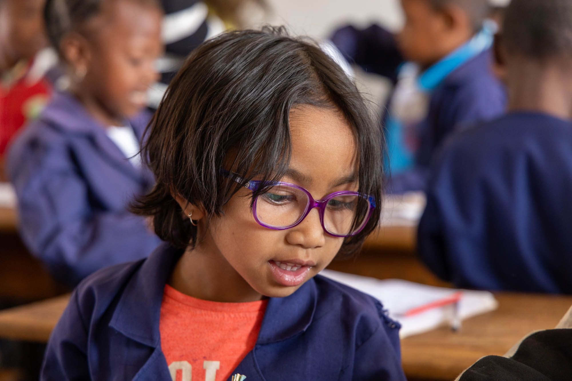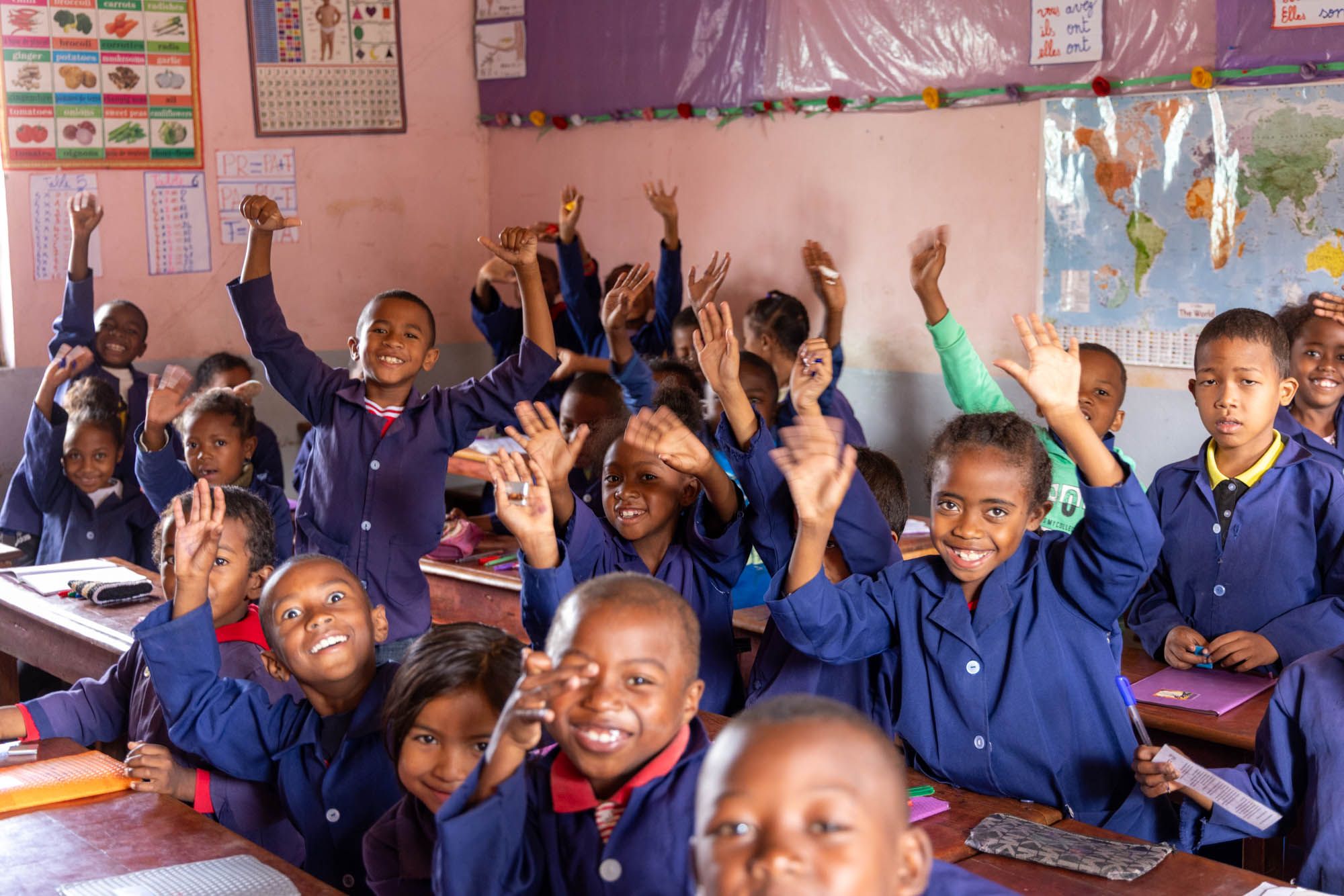 L’école est ouverte du lundi au vendredi, et le Centre assure la scolarité de 900 enfants. Sur place, les cours vont du préscolaire au CM2, où les enfants sont pris en charge par 22 enseignants dans des salles de classe bien équipées. Depuis 2011, le Centre a ouvert des classes d’alphabétisation qui accueillent les enfants des rues, de tout âge. Les cours sont dispensés en français et en malgache. Le Centre continue également d’accompagner les meilleurs de ses élèves, au Collège privé ou publique, au Lycée, et même en études supérieures depuis l’année scolaire 2022-2023. Il continue à soutenir aussi celles et ceux qui partent en formation professionnelle (mécanique, couture, coiffure, électricité, etc…). A la rentrée 2025, l’école commence à ouvrir progressivement les 4 niveaux du Collège (6ème en 2025, 6ème + 5ème en 2026, et ainsi de suite). Le Centre est officiellement reconnu par l’Etat en tant qu’école, depuis 2007 et les enfants y passent leur diplôme à la fin du primaire (CEPE), ce qui permet à certains de pouvoir continuer leurs études dans le secondaire. Cette reconnaissance permet également de bénéficier de la part de l’Etat des manuels scolaires gratuits.