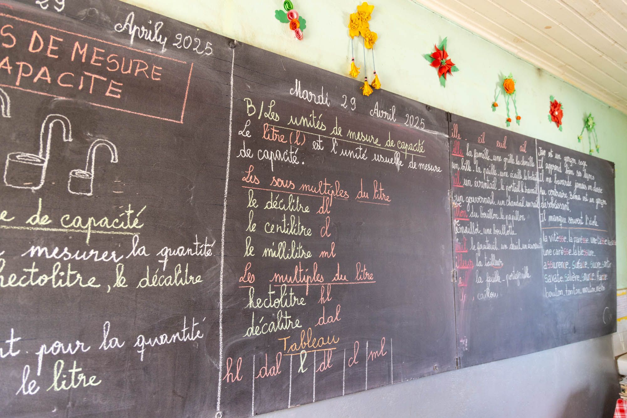 Les programmes sont assez similaires aux anciens programmes français. Tous les cours sont copiés à la main et les élèves sont évalués régulièrement.