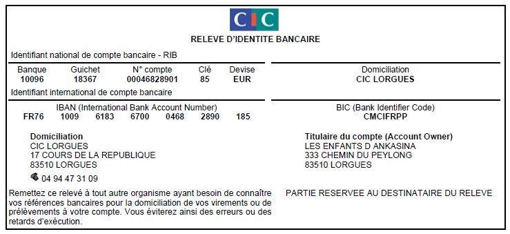 Pour les autres montants ou pour une aide spéciale, nous vous demandons de faire directement un virement sur notre compte bancaire :