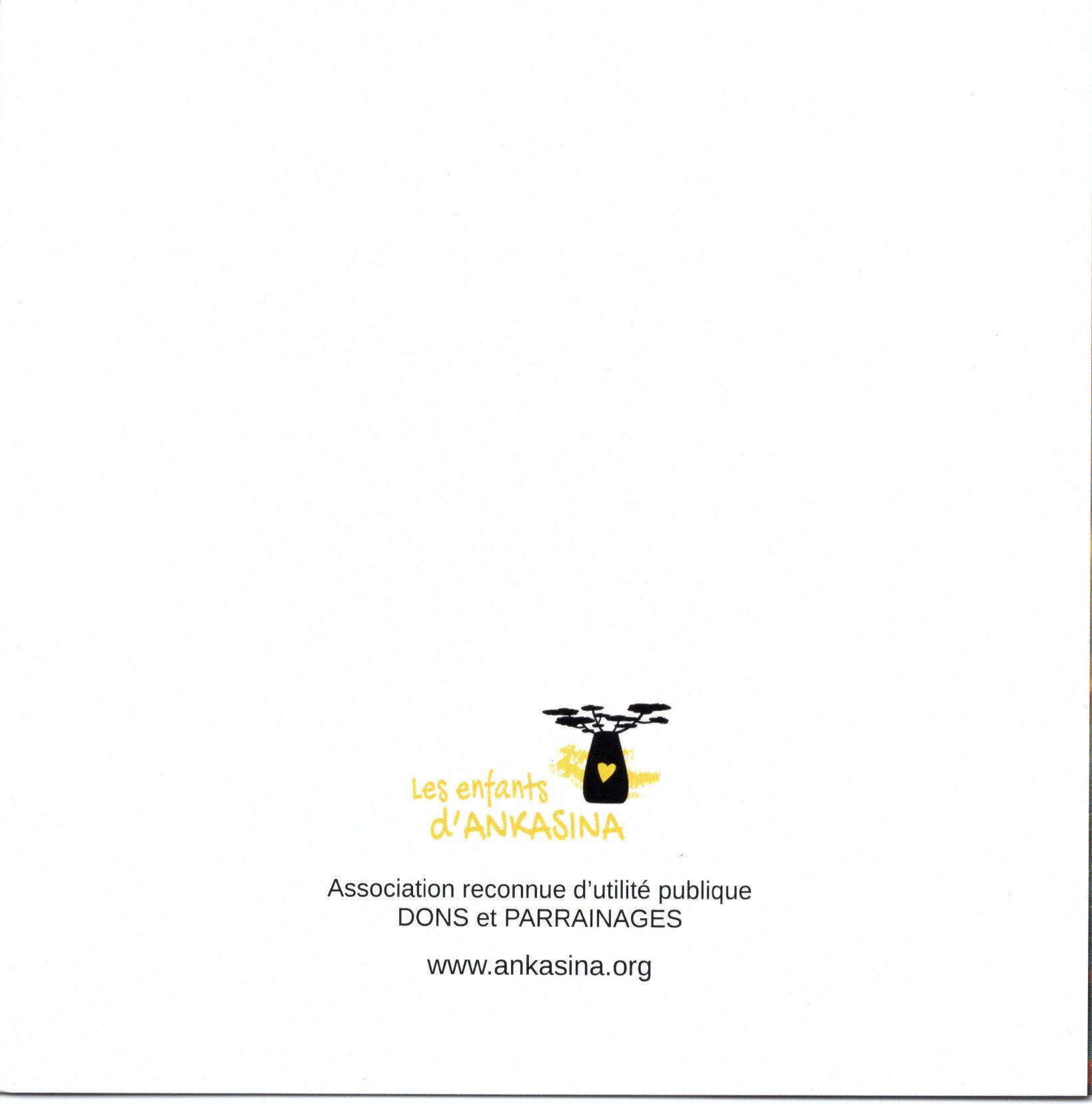 Un moyen de faire plaisir et de partager votre engagement auprès des Enfants d’Ankasina. Au dos des cartes vous retrouverez en toute discretion le logo et l’adresse du site internet de l’association.